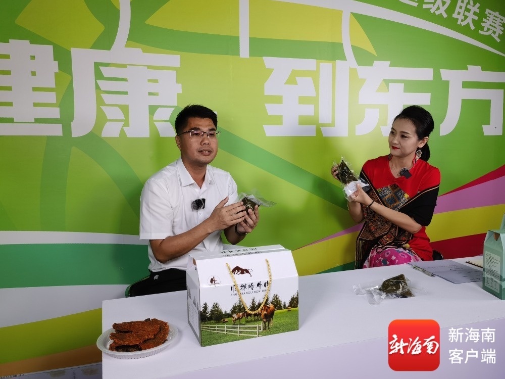 随后登场的八所镇镇长林明志,双手捧着包装精致的罗带粽子与牛肉干,径直走到镜头前。“咱们八所粽子用的是本地糯米、咸蛋黄和新鲜五花肉,煮好后油润不腻,咬一口满是香味;牛肉干则是选用本地黄牛肉,经传统工艺腌制晾晒,越嚼越香。”他边说边拿起一旁的罗带粽子递向镜头前展示,引得现场观众和直播间网友纷纷留言:“看着就好吃。”